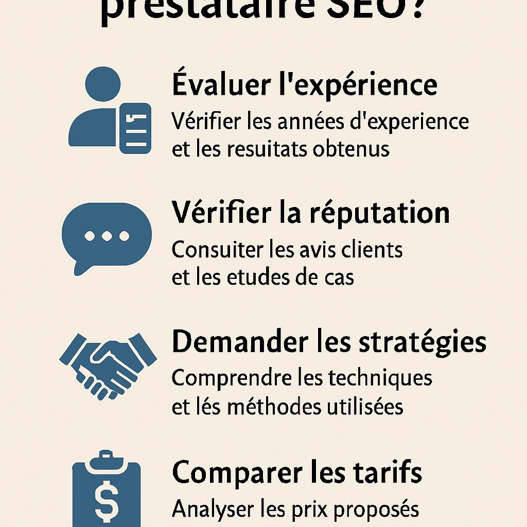 Objectif : vous aider à évaluer un prestataire SEO (freelance ou agence) avant de vous engager. Méthode, livrables, transparence, résultats : tout ce qui compte vraiment — sans jargon